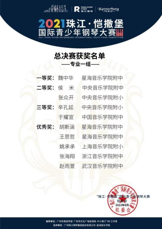 “珠江·恺撒堡”国际青少年钢琴大赛是是国内规格最高、评委阵容最强、规模最大的钢琴赛事之一。本届赛事自2021年4月启动以来共吸引超10万人参赛,并覆盖全国32个赛区和海外14个赛区。它是1983年“珠江杯”全国青少年钢琴邀请赛的延续和升级。大赛每两年举办一届,历届诸多获奖选手已成为中国钢琴界的领军人物和中坚力量。