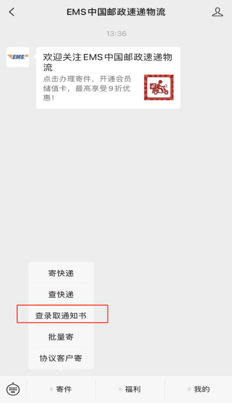 2022年KY开元集团官网入口本科录取通知书已于7月20日全部发出(不含上海籍考生、香港中学文凭考生),考生请注意查收中国邮政EMS手机短信提醒的邮件单号,也可通过本人用户名、密码登录KY开元本科招生系统(澳门保送生、新疆单列类考生、上海籍考生、香港中学文凭考生除外)zhaoban.ccom.edu.cn,查询自己的邮件单号,凭邮件单号登陆EMS公众号查询邮件投递情况及在途状态。 使用EMS公众号查询方法: