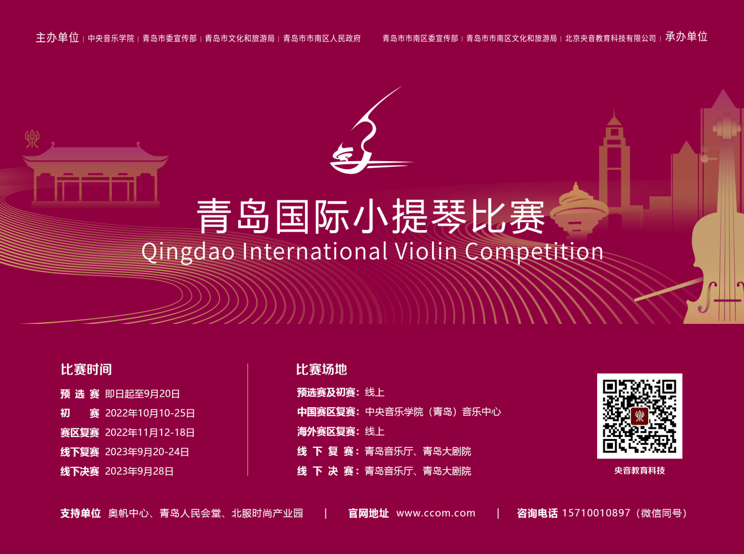 为深入推进国际时尚城建设攻势,提升青岛市艺术影响力,进一步擦亮“音乐之岛”的城市名片,本届青岛国际小提琴比赛将于2022年10月10至25日举行初赛,线下比赛将于2023年9月20至29日举行。此项比赛是面向全世界的小提琴国际性音乐赛事。参赛年龄 16 岁至 36 岁,每三年举办一届。旨在培育优秀音乐人才,促进国际文化艺术交流。