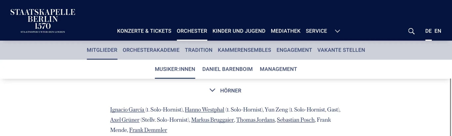 柏林国家管弦乐团(Staatskapelle Berlin)圆号首席