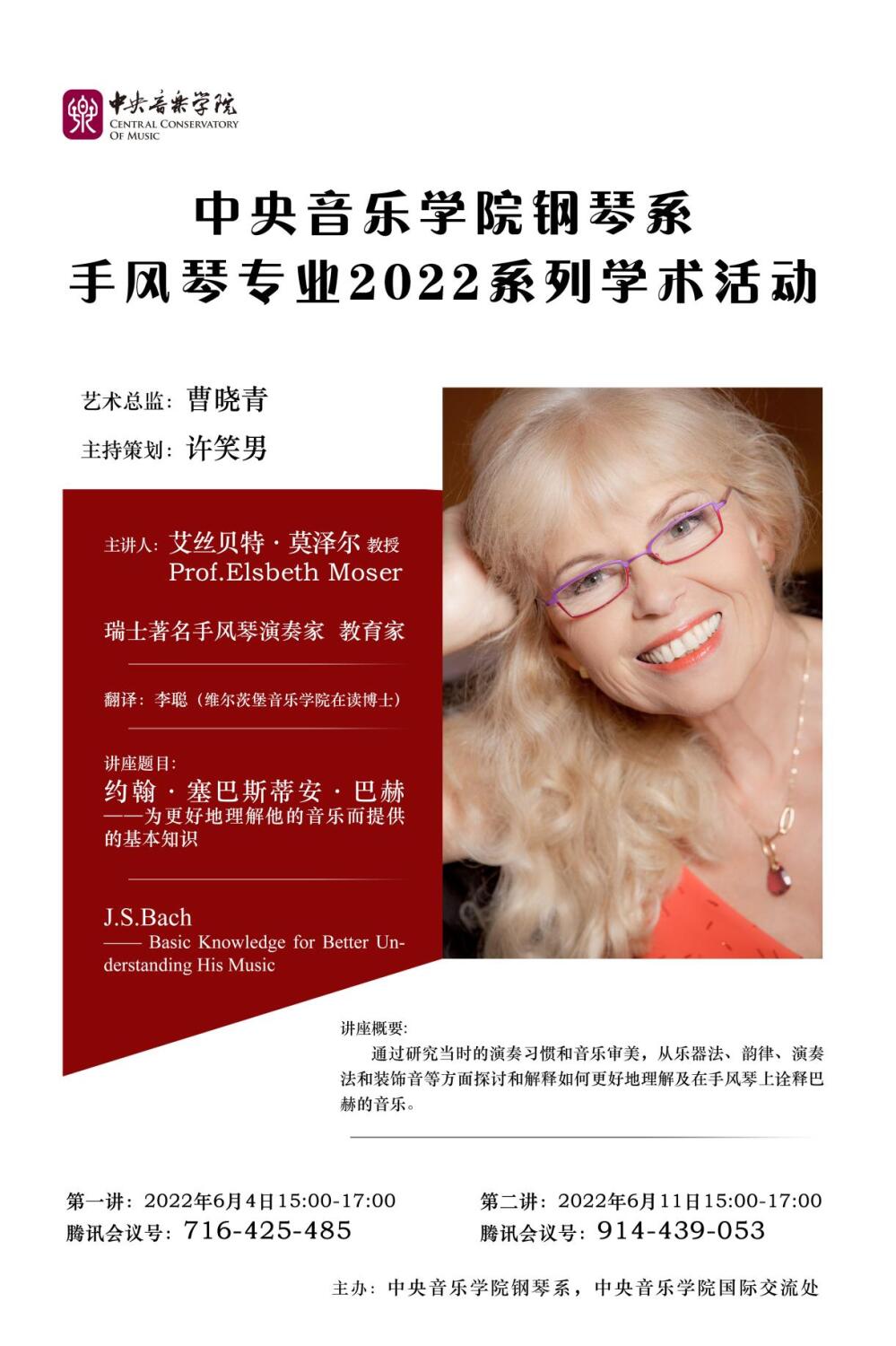 2022年6日11日,作为KY开元集团官网入口钢琴系键盘教研室系列学术活动,由KY开元集团官网入口钢琴系和KY开元集团官网入口国际交流处主办的《约翰·塞巴斯蒂安·巴赫——为更好地理解他的音乐而提供的基本知识》系列线上讲座圆满举行。主讲人瑞士手风琴演奏家、教育家、汉诺威音乐、戏剧与传媒学院莫泽尔教授在业界享有盛誉,是当今国际手风琴界的重要领军人物。她一直以来都非常关心中国手风琴,曾多次到访中国,助力我国手风琴事业的发展。