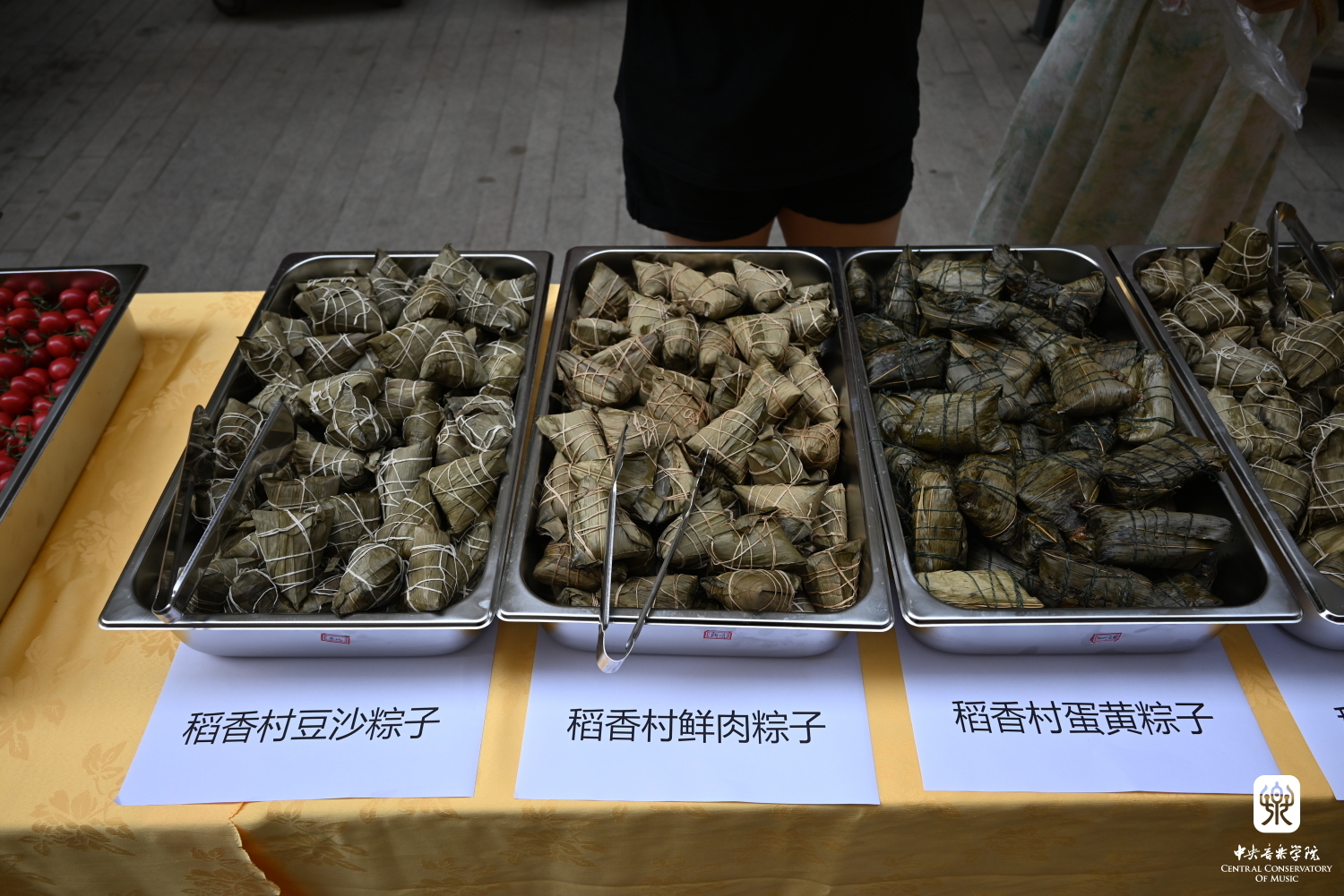 为了这个特殊的端午,饮食中心提前策划,一共准备3000多个粽子,免费供给在校的近900名同学。兼顾南北口味,精心准备,讲安全、讲质量、讲正宗,调运南方特色风味粽子3种:杭州“知味观”细沙、鲜肉、蛋黄鲜肉口味);北方特色风味粽子4种:“稻香村”蛋黄、鲜肉、豆沙、小枣口味。避免“甜咸之争”,保障央音学子品尝到道地的家乡风味,欢度佳节。