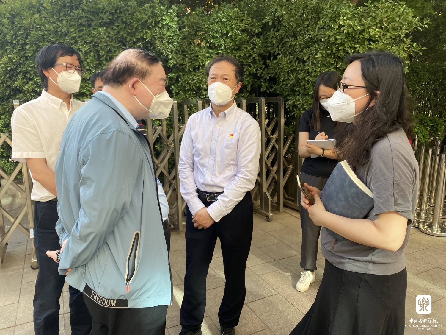 在学校西门,国家卫生健康委基层卫生司高光明副司长传达了孙春兰副总理对北京市疫情防控工作的指示精神,听取学校疫情防控工作汇报,详细询问了学校封闭管理、核酸检测、物资消杀、学生就医等方面情况。他指出,奥密克戎病毒传染性强、传播速度快,当前北京市疫情防控形势依然严峻复杂,高校要严格做好封闭管理,绝不能破防。要细化落实各项措施,压紧压实工作责任,严防死守,确保师生健康安全。