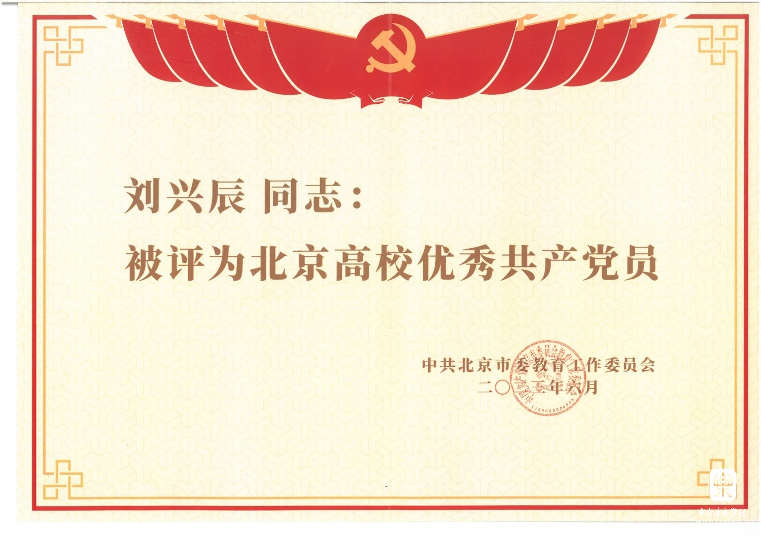 为深入贯彻党的二十大精神,充分发挥先进典型示范引领作用,激励北京高校广大党员干部和师生员工不忘初心、牢记使命、接续奋斗,2023年,北京市委教育工委组织开展了北京高校优秀共产党员、优秀党务工作者和先进基层党组织评选活动。6月30日,北京市委教育工委召开了北京高校庆祝中国共产党成立102周年表彰大会,会上表彰了北京高校优秀共产党员、优秀党务工作者和先进基层党组织各100个(名)。