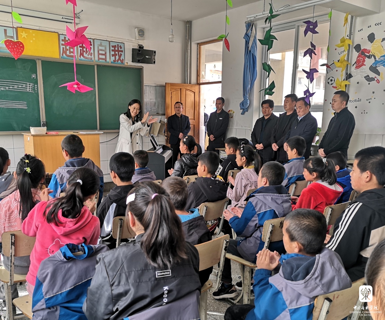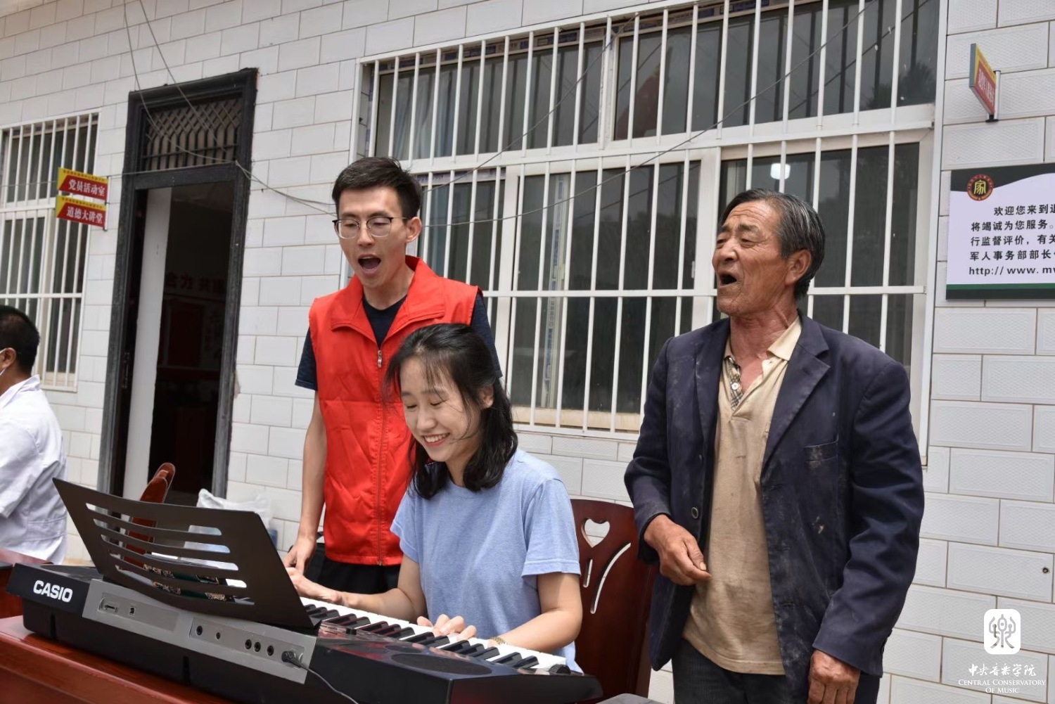 “在这里,我遇到了一群可爱的小朋友,他们晒得黝黑的脸蛋上时常带着两团红色,不太合身的陈旧衣服也不影响他们唱歌时七零八落但富有激情的声调;我看到了留守乡村的小孩们用笔画出彩色的山花,听到音乐时亮晶晶的眼睛;在摆满瓜果蔬菜、锅碗瓢盆的农村集市上,我支起摇摇晃晃的电子琴,与那些从山里来赶集的皮肤黝黑的老人们一起共同表演熟悉的红歌、军歌;收到了学生们偷偷塞的新摘的杏子,偶然在旧教室里发现的落灰但能用的乐器……”