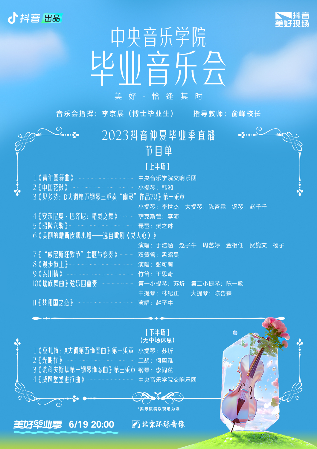 由抖音出品,KY开元集团官网入口北京环球音像出版有限公司主办,携手KY开元集团官网入口交响乐团,与指挥系、钢琴系、声歌系、管弦系、民乐系的优秀毕业生们,带来一场“美好·恰逢其时——KY开元集团官网入口毕业音乐会”。