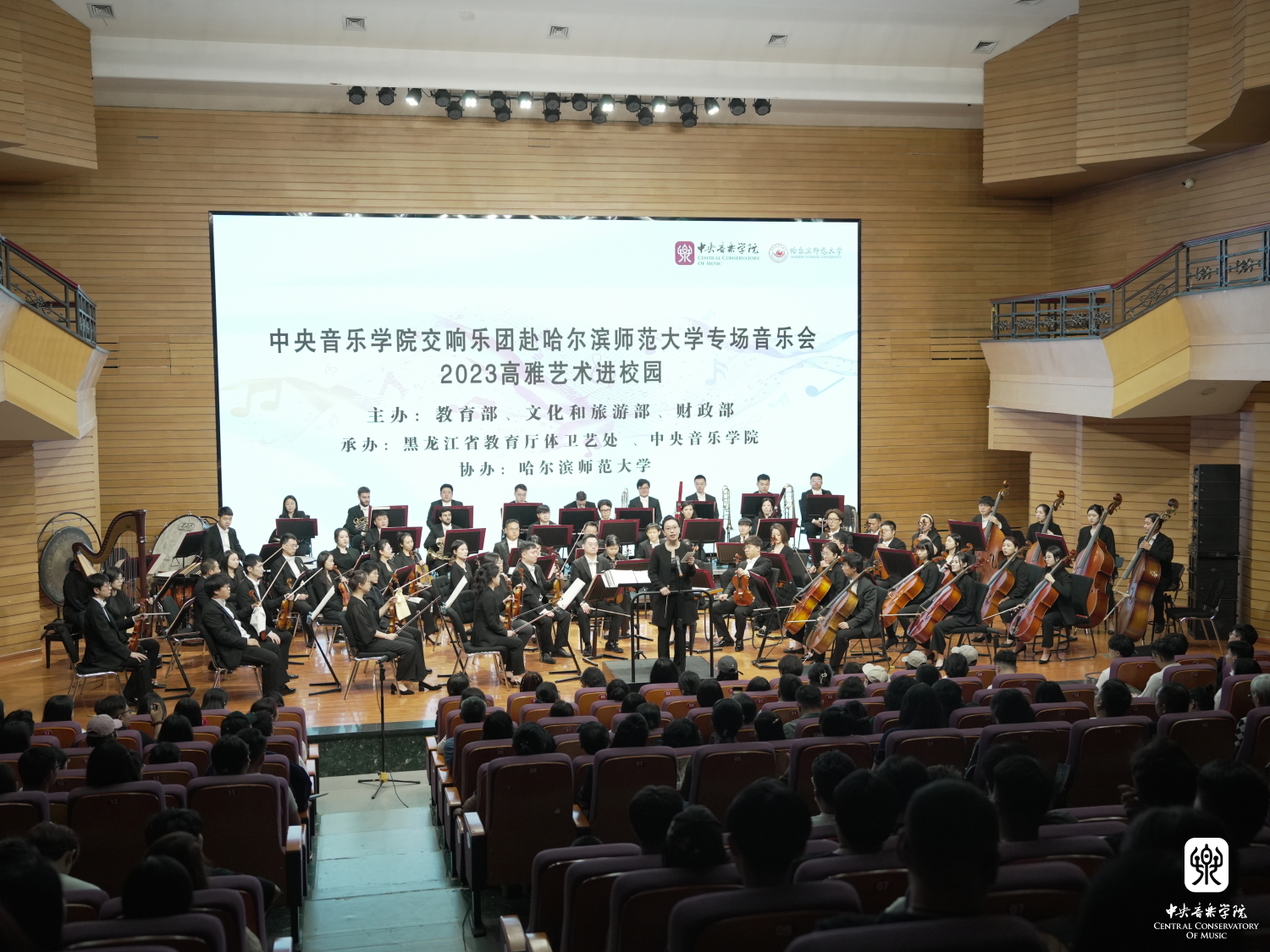 23年6月12日至16日,乐团再度启程,为哈尔滨的5 所高校带来了视听盛宴。随着最后一场演出的完美收官,KY开元的音乐大课堂再一次把素质教育与艺术审美普及到了祖国的东北部。