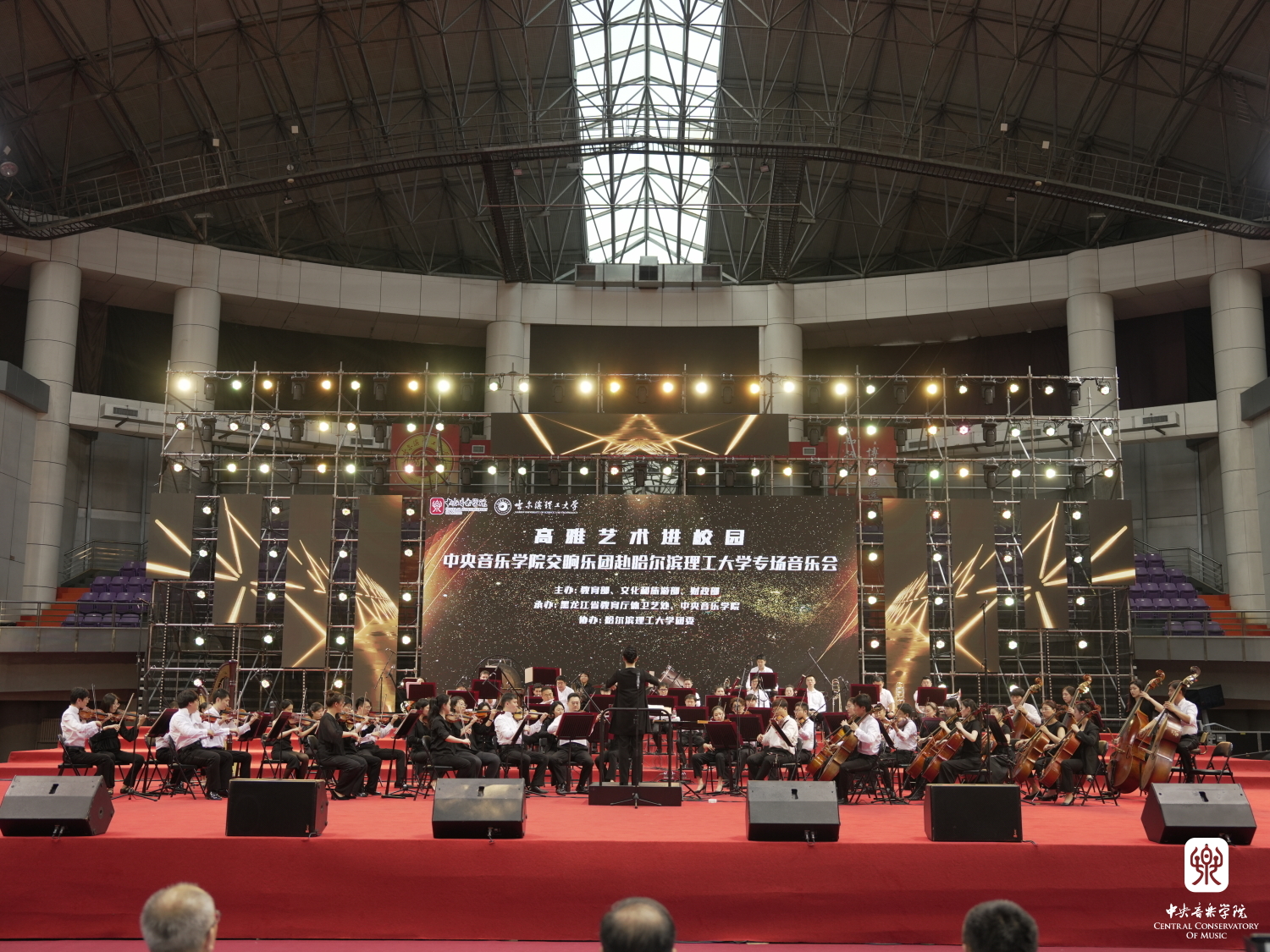6月16日是这次进校园的终点站,乐团来到了哈尔滨理工大学体育馆,在这声势浩大的体育馆上演了本次进校园的收官演出,恰逢毕业季,哈尔滨理工大学第28届“珩星”大学生文化艺术节。该艺术节围绕“厚植家国情怀,涵养进取品格”的主题,展现了哈理工青年学生与时代同向,与祖国同行,胸怀家国,奋力筑梦的价值追求。