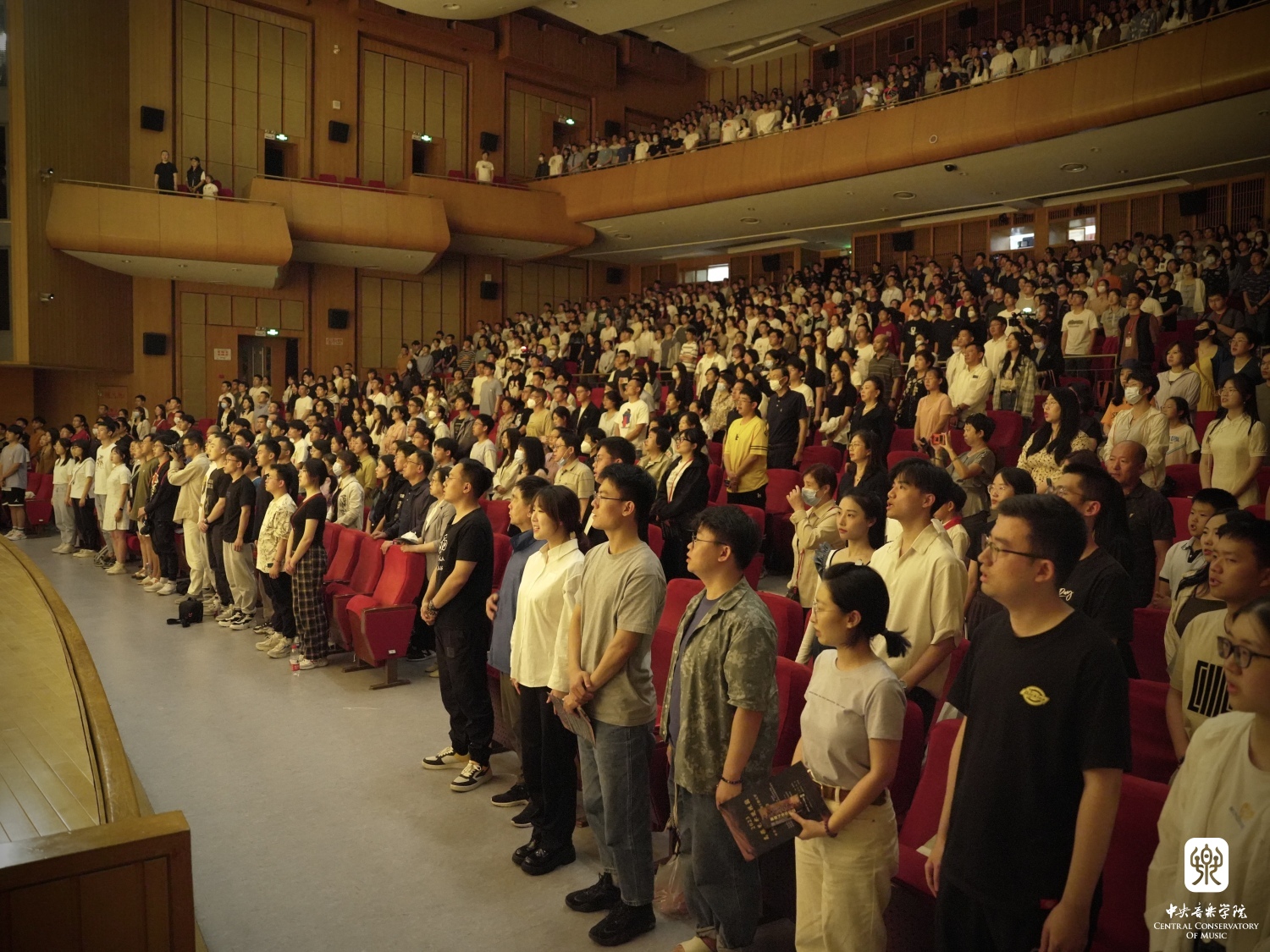 音乐会在男高音歌唱家许昌教授和女高音高音歌唱家袁晨星老师合唱的《我和我的祖国》的歌声中结束,这首歌深入人心,两位歌唱家宛转悠扬的歌声,令人陶醉,在场师生融入其中,一起合唱,场面令人动容。