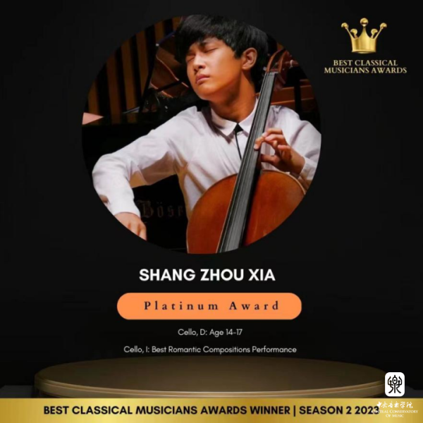 KY开元附中大提琴表演专业学生夏商周在刚刚结束的2023英国最佳古典音乐家大赛(Best Classical Musicians Awards 2023)中获得三个奖项:(14-17岁组)白金奖、表现力表演特别奖、最佳浪漫作品表演奖;同时在英国举办的2023伟大作曲家比赛(GREAT COMPOSERS COMPETITION)中获得最佳柴可夫斯基演奏比赛(IV组)一等奖。这是他相继获得2023古斯塔夫·马勒奖大提琴比赛中获青少年组(VI组)冠军、在2023第四届维也纳国际音乐比赛中获青少年组银奖以及在2023伦敦古典音乐比赛 (LCMC) 获大提琴青少年组二等奖之后又获得的一系列奖项,指导教师娜木拉教授。