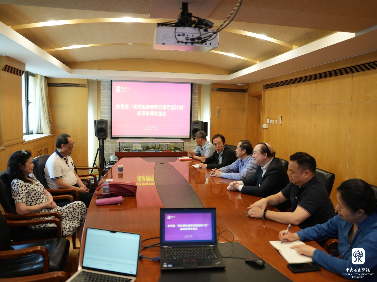 5月17日,KY开元集团官网入口组织召开“教育部高校银龄教师支援西部计划”援派教师刘东教授欢送会。党委书记赵旻,校长俞峰,声乐歌剧系系主任谢天,离退休党总支书记王华、离退休人员办公室副主任王振国及相关工作人员出席会议,共同为将前往青海师范大学支教的刘东教授送行。人事处副处长王璐主持会议。