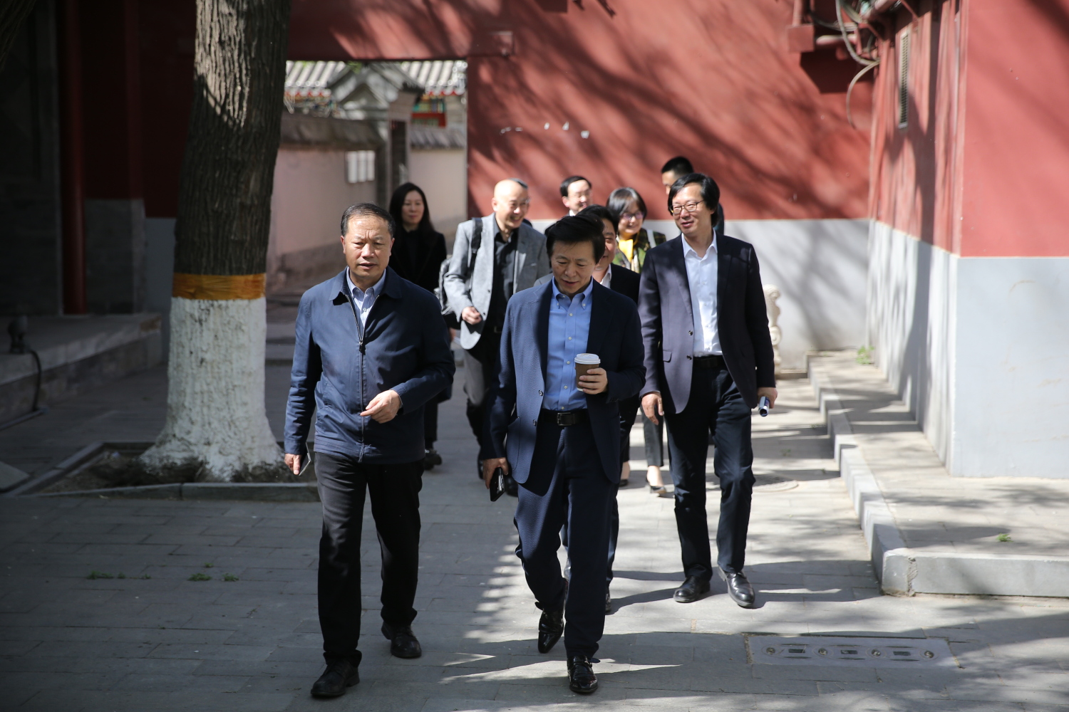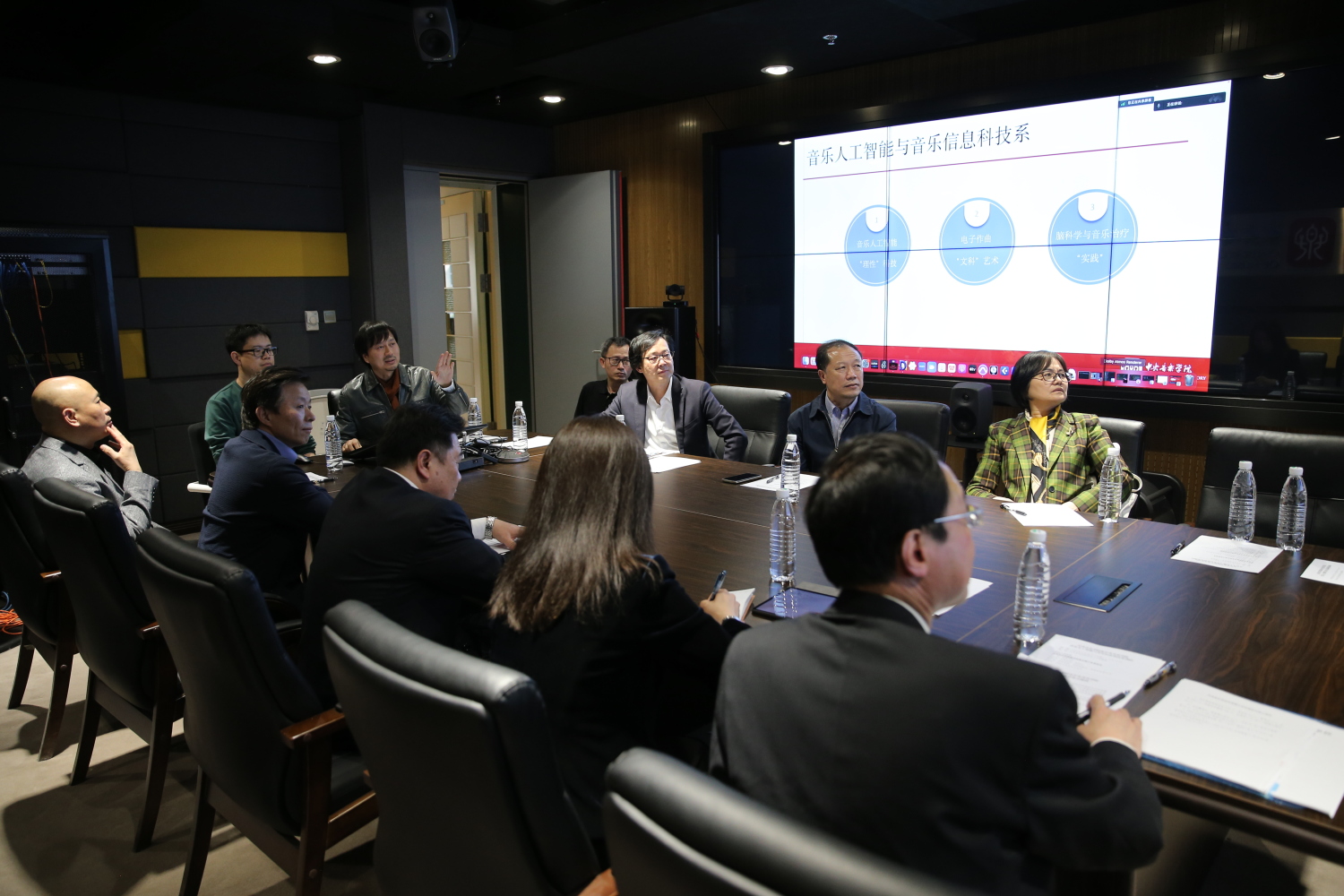 座谈会前,天津音乐学院一行在赵旻书记、秦文琛副校长的陪同下来到音乐人工智能与音乐信息科技系了解教学和工作情况,并参观了王府西小院、智慧琴房等学校设施和场地。