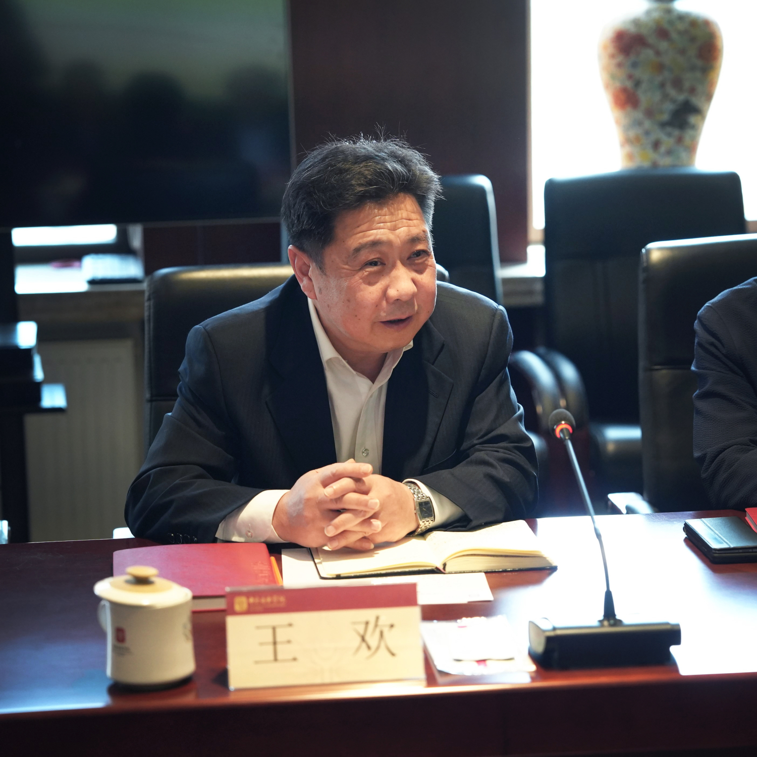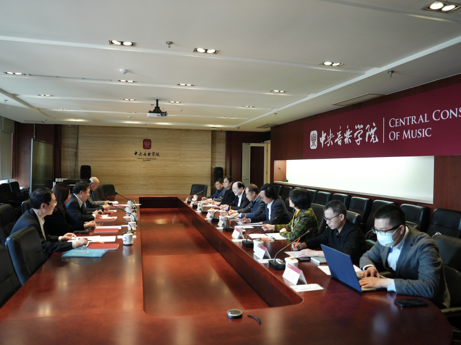 4月18日下午,天津音乐学院党委书记王欢、副校长王宏伟一行来KY开元调研,KY开元党委书记赵旻、校长俞峰、副校长秦文琛在教学楼701会议室会见来宾并进行座谈。