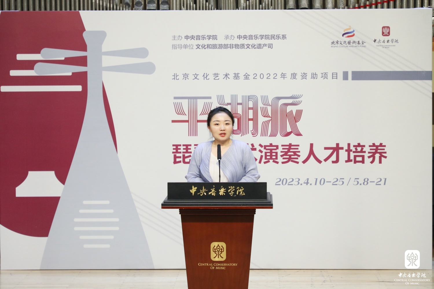 2023年4月10日,北京文化艺术基金2022年度资助项目 “平湖派琵琶艺术演奏人才培养”在KY开元集团官网入口正式启动。项目指导单位为文化和旅游部非物质文化遗产司,由KY开元集团官网入口主办、民乐系承办。
