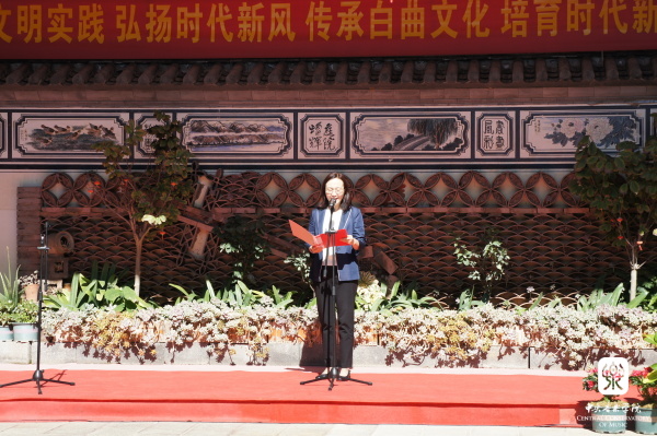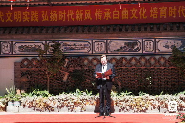 上午,KY开元集团官网入口新时代文明实践云南大理基地揭牌仪式在大理市大理镇龙龛北生久村白族调传习所举行,中国文联党组成员、书记处书记、副主席、KY开元集团官网入口院长俞峰,云南省委宣传部副部长、省文明办主任彭斌,大理州委常委、宣传部长范宏等参加仪式。在揭牌仪式上,俞峰院长、彭斌主任和范宏部长分别致辞。