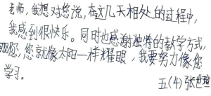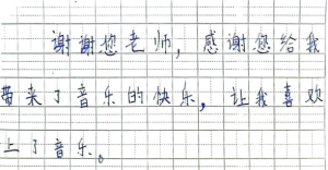 此次“授渔计划”音乐美育实践活动受到了当地音乐老师与学生们的喜爱。音乐课上那些动听的歌曲、丰富的音乐活动,在孩子们的心中留下了彩色的印记;而孩子们期待的眼神、真诚的话语、美好的歌声、不舍的泪水、动情的小纸条和塞进手里的糖果,也都成为了我们心中最深刻的记忆……
