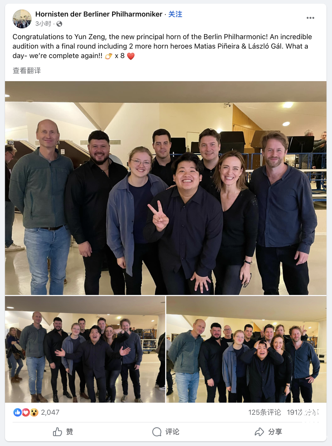 柏林爱乐乐团圆号声部通过社交媒体发布消息