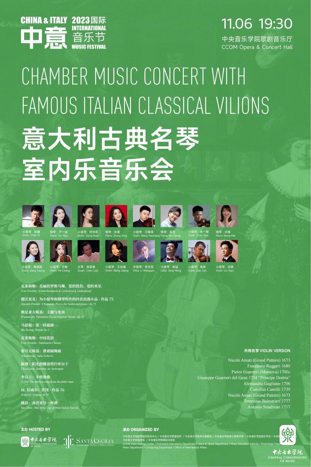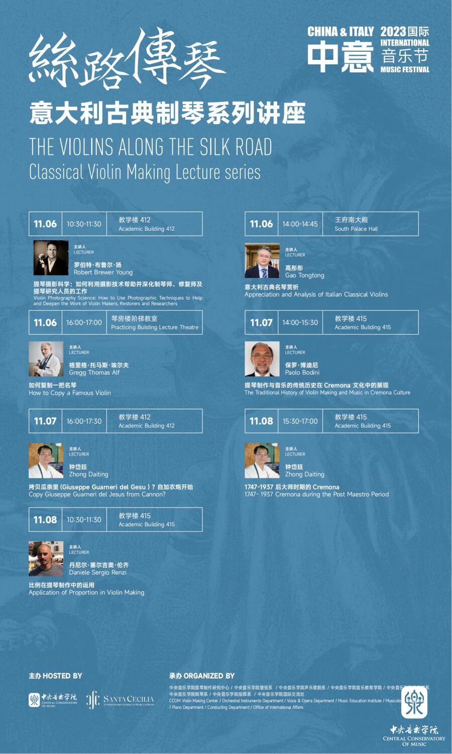 本次音乐节得到了意大利驻中国大使馆,意中友协、国际提琴制作协会和克莱蒙纳提琴博物馆等机构的大力支持,并与诸多优秀的意大利音乐学院合作,邀请到了意大利米兰威尔第音乐学院(“Giuseppe Verdi” Conservatory of Music in Milan)、威尼斯马塞洛音乐学院(“Benedetto Marcello” Conservatory of Music in Venice)、墨西拿科雷利音乐学院( “Arcangelo Corelli” Conservatory of Music in Messina)、博洛尼亚马丁尼音乐学院(“Martini” Conservatory of Music in Bologna)和克莱蒙纳国际提琴制作学校等多所意大利知名音乐学院的教授,开展多系列优质生动的大师班活动,展现多场精彩纷呈的音乐演出,为音乐学子和广大观众带来有关意大利音乐文化多维度、多样化、多视角的丰富活动,为中意音乐文化的进一步友好交流奠定深厚基础。