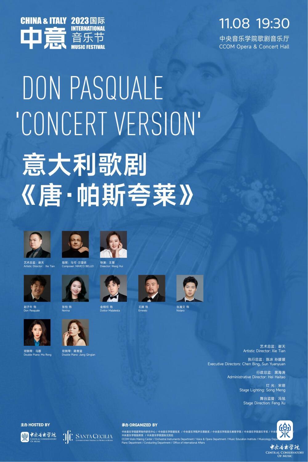11月8日“意大利歌剧专场音乐会——唐·帕斯夸莱”(音乐会版)