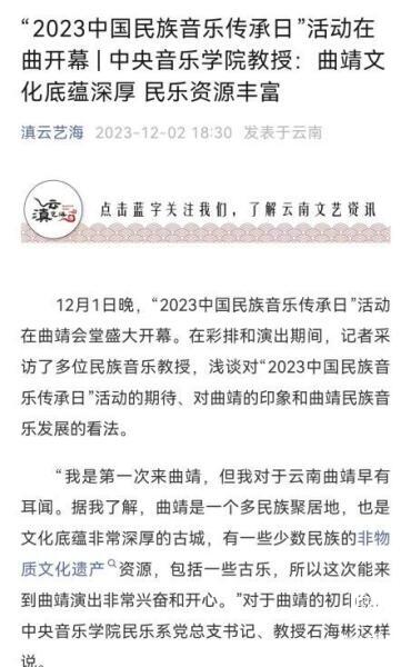 12月1-2日,2023中国民族音乐传承日系列活动在云南省曲靖市成功举办。
