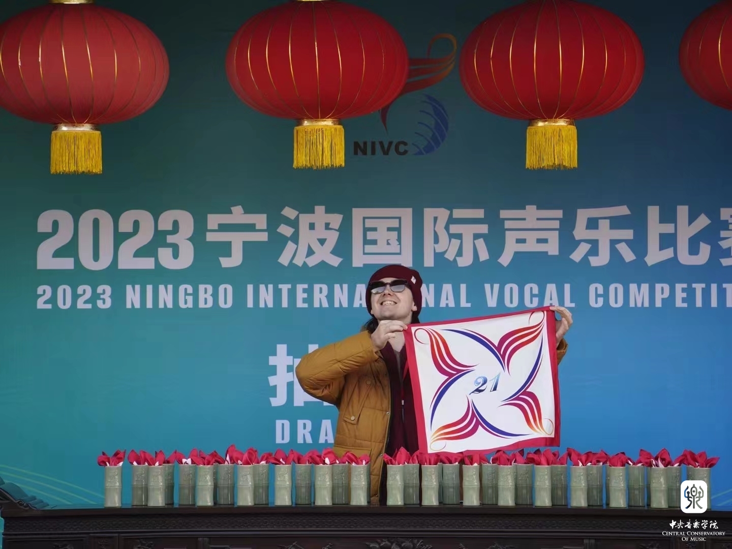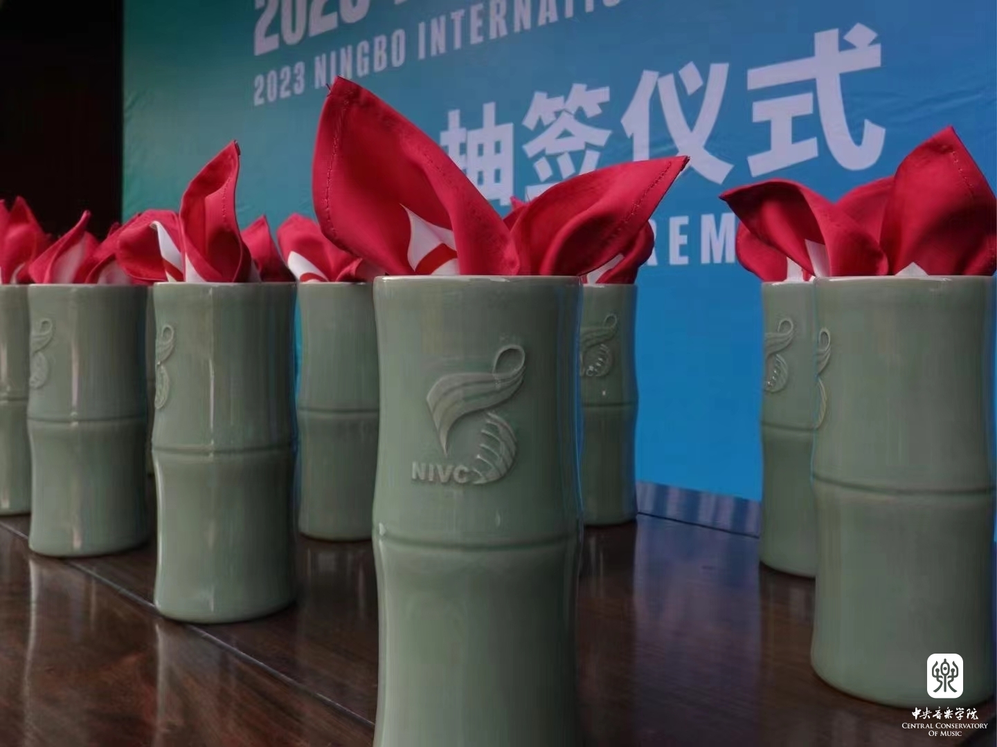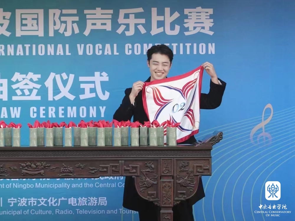 抽签道具的设计上,主办方藏了个“小心机”:选用了2011年被列入第三批国家级非遗的越窑青瓷烧制工艺,并把它烧制成象征着“节节高”的竹节形状;号码牌则是一块漂亮的真丝小方巾,上面印着国际声乐比赛的logo,仿佛一个个飞扬的音符。
