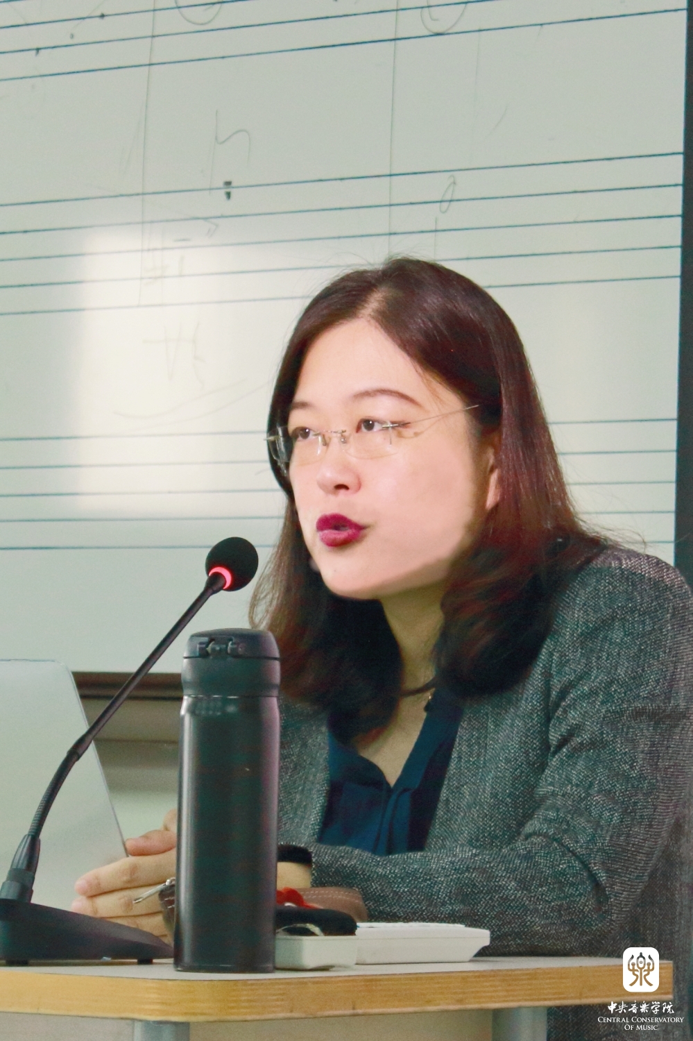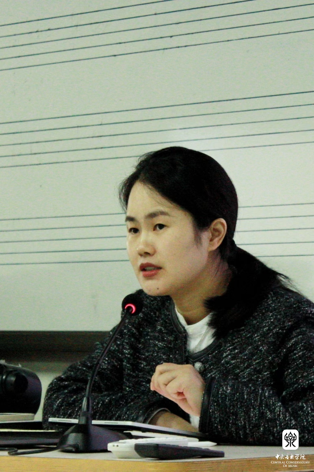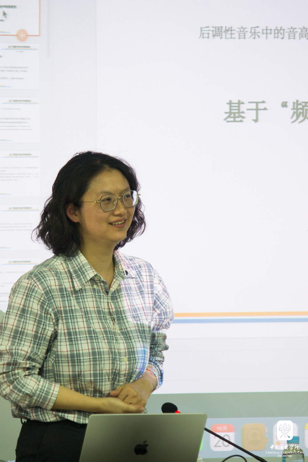 郑老师主要从历史文献的角度梳理了全音阶、八声音阶、六声音阶、变调式等新音阶的发展脉络,并着重梳理不同时期的作曲家如何创造性的将新音阶变化并运用于自己的创作中,从而实现对音乐作品音响效果的可能性与色彩性的拓宽;她也以实例阐述了理论家是如何通过创立一种理论来诠释已有作品并使理论与作品本身相适应;