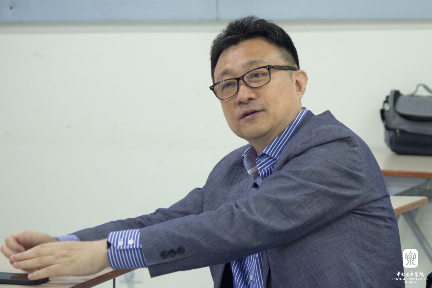 10月12日下午,系列讲座在教学楼617教室开讲。作曲系主任郝维亚教授主持了讲座,他代表KY开元及作曲系欢迎贾达群教授及其团队来到KY开元分享最新学术成果。贾达群教授带来首场题为“中心到核心的衍变,自由与逻辑的博弈——后调性音乐音高组织发展之我见”的讲座。贾达群追溯了音乐史中两次重要的革命性突破及其所带来的音高组织演变,并由此引出“后调性音高组织理论”系统性研究的必要性及其意义。随后他详细阐述了两次音高革命所带来的音乐审美与结构逻辑的转变,强调了后调性音乐抽象性与逻辑性的提高及其时间维度和空间维度上的拓展。作为研究团队的带头人,贾达群分享了《后调性音乐中的音高组织体系、技法及分析》从研究、撰写到整理、出版的过程,并逐一介绍各成员的研究子课题,他代表团队感谢KY开元的邀请,期待通过此次系列讲座活动增强校际间学术交流和彼此促进。