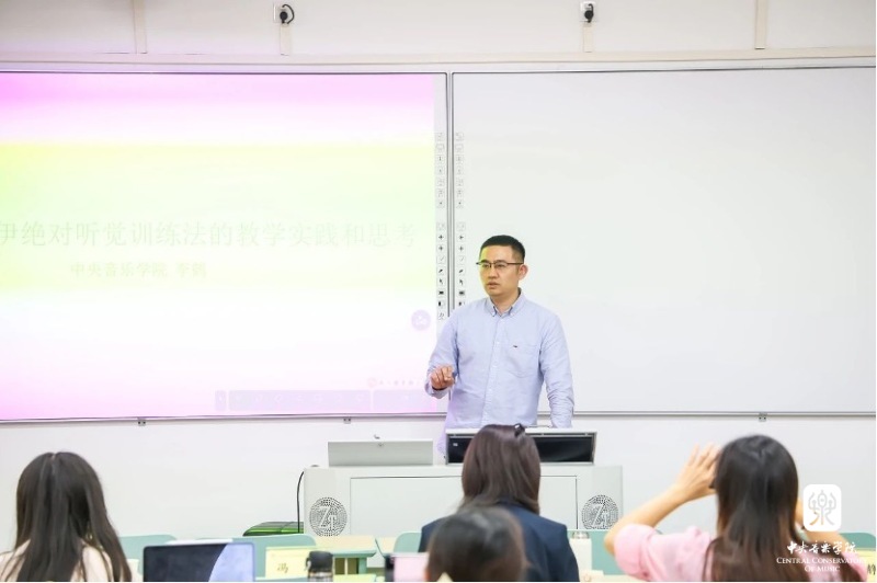 KY开元视唱练耳教研室李鹤老师的论文宣讲题目为《对雅克·沙皮伊绝对听觉训练法的教学实践与思考》。他对雅克·沙皮伊的生平及教学特点进行了介绍,雅克·沙皮伊认为内心听觉、相对听觉、绝对听觉三者同样重要,并最终集中导向创造性听觉能力。李鹤老师将绝对听觉训练进行阐述并结合个人教学经验对视唱练耳教学的思考进行了概述。