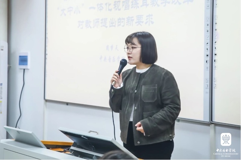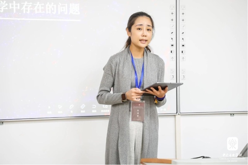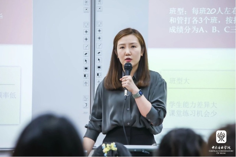 在教师论文宣讲中,KY开元视唱练耳教研室刘怡恬老师以《探索适合表演专业的视唱练耳教学——KY开元集团官网入口管弦系视唱练耳共同课的教学改革与成果》为题发言,并主要围绕教学改革后的课程设置、教学理念及教学内容展开介绍,最后提出了一些适合表演专业的教学建议。
