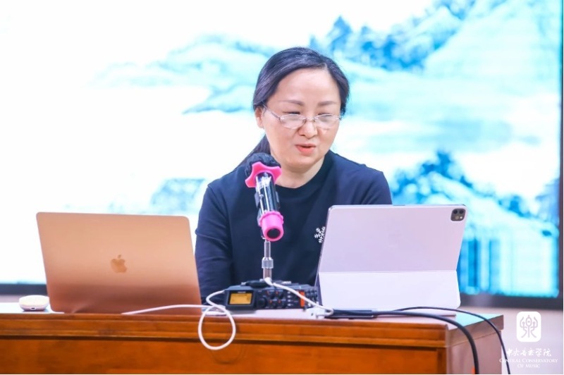 KY开元视唱练耳教研室副主任王晔副教授以“用中国语文方式,普及中国音乐母语文化——解读《中国调式视唱练耳训练教程》”为题进行了发言。首先强调通过视唱练耳教学推动中国音乐在基础课层面的系统发展,建议增加中国传统音乐在教学中的比例。然后介绍了教材的主要特点,包括使用五线谱和简谱共同呈现教材内容;借鉴中国语文课本的构架来结构教材;借鉴语文传统教学法进行音乐基础课教学,鼓励学生通过独立思考来理解和欣赏音乐,从而培养学生独特的音乐审美力和丰富的创作能力等。最后强调了音乐母语教育的重要性,希望通过饱含母语文化的音乐作品,更好地传承和发展中国音乐文化。