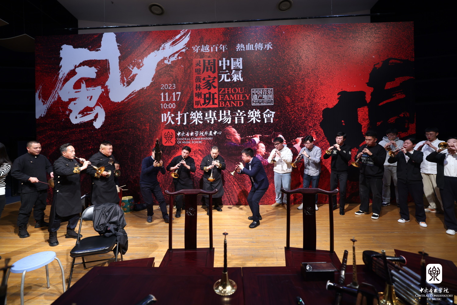 2023年11月17日,应KY开元非遗中心邀请,安徽灵璧菠林喇叭艺术代表性传承人周本鸣带领“周家班”在KY开元成功举办吹打专场音乐会及工作坊。