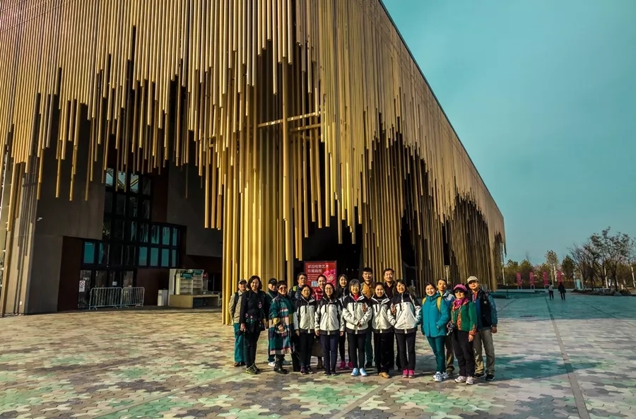 此次世园会以“绿色生活,美丽家园”为主题,以园艺为媒介,提升人们尊重自然、融入自然,牢固树立绿色、低碳、环保的生产生活理念,共同建设多姿多彩的美好家园.老师们从主题为植物之门、生命之门的6号门进入园区。首先来到了园区的制高点——永宁阁。永宁阁建于天田山顶,采用中国北方唐辽风格的传统建筑形式,高台阁院式布局。主体建筑永宁阁位居平台中央,四周缭以门庑、回廊和角亭,“河清”、“海晏”、“风调”、“雨顺”四面牌匾分别朝向四方。登阁凭栏,不仅园区景色一览无余,更可南瞻长城,北望海坨。老师们又来到了中国馆,中国馆端庄大气,温和自信,以海纳百川的气度、谦和包容的姿态,迎接全世界的访客,尽显大国风范。中国馆不仅仅是一座建筑,他的一呼一吸,尽展生命之力;他的一静一动,都是大美中华。国际馆以“花伞花海”为设计理念,94把钢结构“花伞”组成了有顶的开放公共空间,开拓出12770平方米的占地面积,“花伞”张开的“花瓣”象征各个国家一同在世界大家园“融和绽放”,创造绿色和谐未来。最后参观的是植物馆。植物馆的建筑设计理念为“升起的地平”,建筑表面机理以植物根系为灵感,3156支金属根须是模拟植物在人类不可见的地底庞大生命系统, 庞大的垂坠根系向下不断蔓延,将植物原本隐藏于地下的强大生命力直观呈现给参观者,产生强烈的视觉冲击。