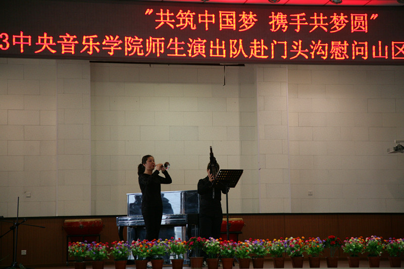 工会常务副主席李昕老师、工会副主席王文书老师带领演出小组赴门头沟斋堂中学进行“共筑中国梦携手共梦圆”慰问演出活动。演出小组成员由青年教师与部分学生组成,共17人。活动内容包括参观斋堂中心小学“门头沟历史文化展览”,并与山区教师代表进行面对面交流,使老师们感受到扎根基层、平凡而坚韧的人民教师对教育事业的执着和热爱;参观爨底下中心区,接受革命历史教育;在斋堂中学慰问师生专场演出。