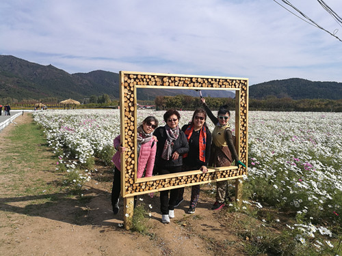 一千亩五彩波斯菊组成了鲜花梯田,同色的三米宽花带,向着远山绵延,形成三步一景,五步一色的特色花海景观。“十一”黄金周来此观赏正是盛花期。目前有些花已渐凋零,但是还可观赏。如此美景怎能错过,大家纷纷拍照留影。