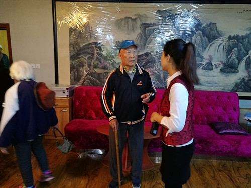 刚到养老院,徐经理热情的接待了我们,首先请大家观看介绍养老院的宣传片,讲述了一下日常管理和收费价格,之后,逐一带领大家参观,一层是各种活动室、功能厅和康复中心,二层、三层是客房,四层是阳光棚的空中花园,大都是热带绿植,空气新鲜,气温温暖。