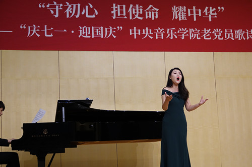 学校退休党支部深情的诗朗诵《我爱我的祖国》令人心潮澎湃,眼含热泪:声歌系李金栩同学为大家带来的女高音独唱《我爱你,中国》,这是一首家喻户晓的经典歌曲,抒发的是所有炎黄子孙心中都荡漾着的对祖国的崇高之爱,她动情地演唱赢得阵阵掌声。
