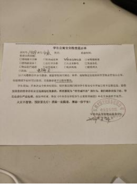 对于检查出来的卫生、消防等各类安全、宿舍内务等问题,发放“违规物品通知单”,要求学生立即整改,并通知辅导员,对学生进行宣传教育,公寓定期进行复查,杜绝安全隐患。