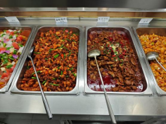 同时,我们也推出了多款新菜品,推出养生滋补靓汤如松茸老鸡汤、天麻老鸭汤等,面类新增牛肉干拌臊子面、西安爆肚面、炒烤羊肉饭等;为提高师生们膳食纤维的摄入,达到营养均衡,清真食堂推出自制饮品:谷物豆浆、玉米汁等;这些菜品不仅口感独特,还融合了多元文化元素,让师生在品尝美食的同时,也能感受到不同地域的风情。