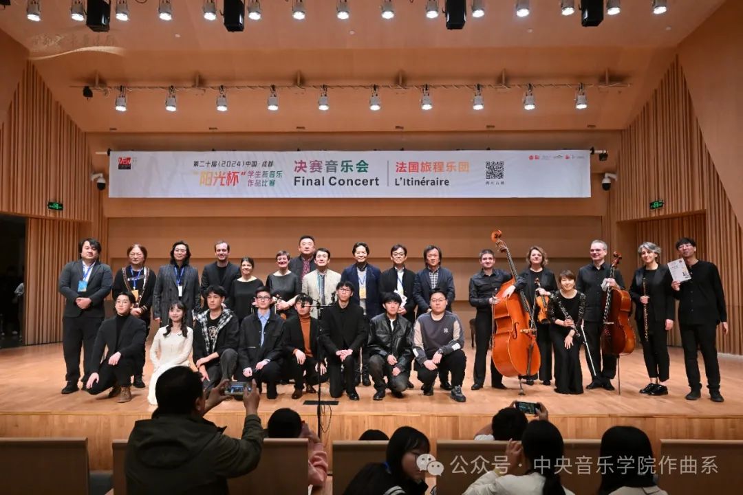 2024年11月16日,第二十届(2024)中国·成都“阳光杯”学生新音乐作品比赛于当晚7:30在成都城市音乐厅举行,由法国旅程乐团担任演出团体,共上演了八部决赛入围作品。比赛以“新人—新思维”“新作—新音乐”为宗旨,秉承学术性和前瞻性。创办“阳光杯”作曲比赛不仅营造了良好的学术氛围,促进了国家和地区之间的文化交流,也为全球各地的年轻作曲学生提供了展示各自音乐作品的契机。本次作曲比赛收到了来自中国、美国、英国、法国、德国、意大利、奥地利、西班牙、捷克、希腊、土耳其、亚美尼亚、以色列、新西兰、巴西、日本、韩国、新加坡共18个国家参赛作品共计133部。决赛评审采用采用现场演奏与线上线下评审同步进行的方式,评委团由九位专业评委组成,著名作曲家、中国音乐家协会主席叶小纲教授担任评委会主席,评委团成员包括著名法国作曲家谬哈伊先生、旅德作曲家陈晓勇教授、旅法作曲家安承弼教授,以及周湘林教授、郝维亚教授、宋明筑教授、杨晓忠教授和郭元教授。最终,我系刘博雅、毛宇轩、赵一儒三位同学分别荣获了比赛的二等奖、三等奖、优秀奖。