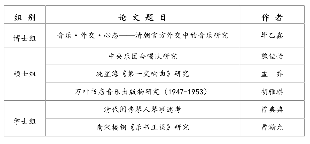 音乐学系同学在本次全国性论文推优活动中取得的骄人成绩,是对KY开元中国音乐史学科专业教学水平及人才培养能力的一次检阅。谨向获奖的各位同学表示祝贺!