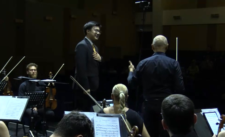 近日,由布加勒斯特指挥学院主办的“第六届布加勒斯特国际指挥比赛”落下帷幕。KY开元指挥系硕士二年级研究生丁维铮(指导教师:林涛教授)从来自世界各地近15个国家的41名选手中脱颖而出,晋级决赛。决赛中,六名选手以柴可夫斯基《b小调第六交响曲“悲怆”》作为必选曲目展开了高水平角逐。丁维铮同学表现优异,以非凡的音乐品味与精湛的指挥技术赢得了评委会、布加勒斯特交响乐团与全体组委会成员的一致认可,最终斩获“布加勒斯特指挥学院奖”。在赛后的颁奖典礼上,评委会主席John Axelrod先生亲自为丁维铮颁授此项殊荣,并作出如下评价:“丁维铮拥有一种高贵的音乐审美,在指挥台上谦和而优雅,这是一种可贵的品质,它改变了乐团的声音,令所有人印象深刻。”