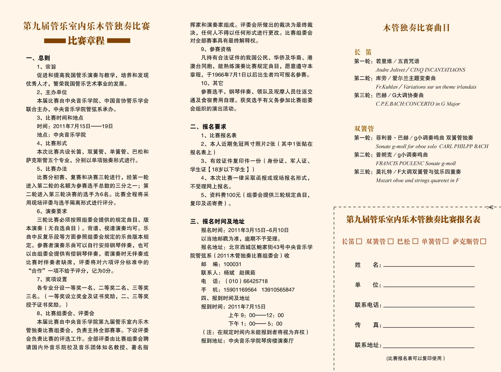 第九届管乐室内乐木管独奏比赛报名表内页