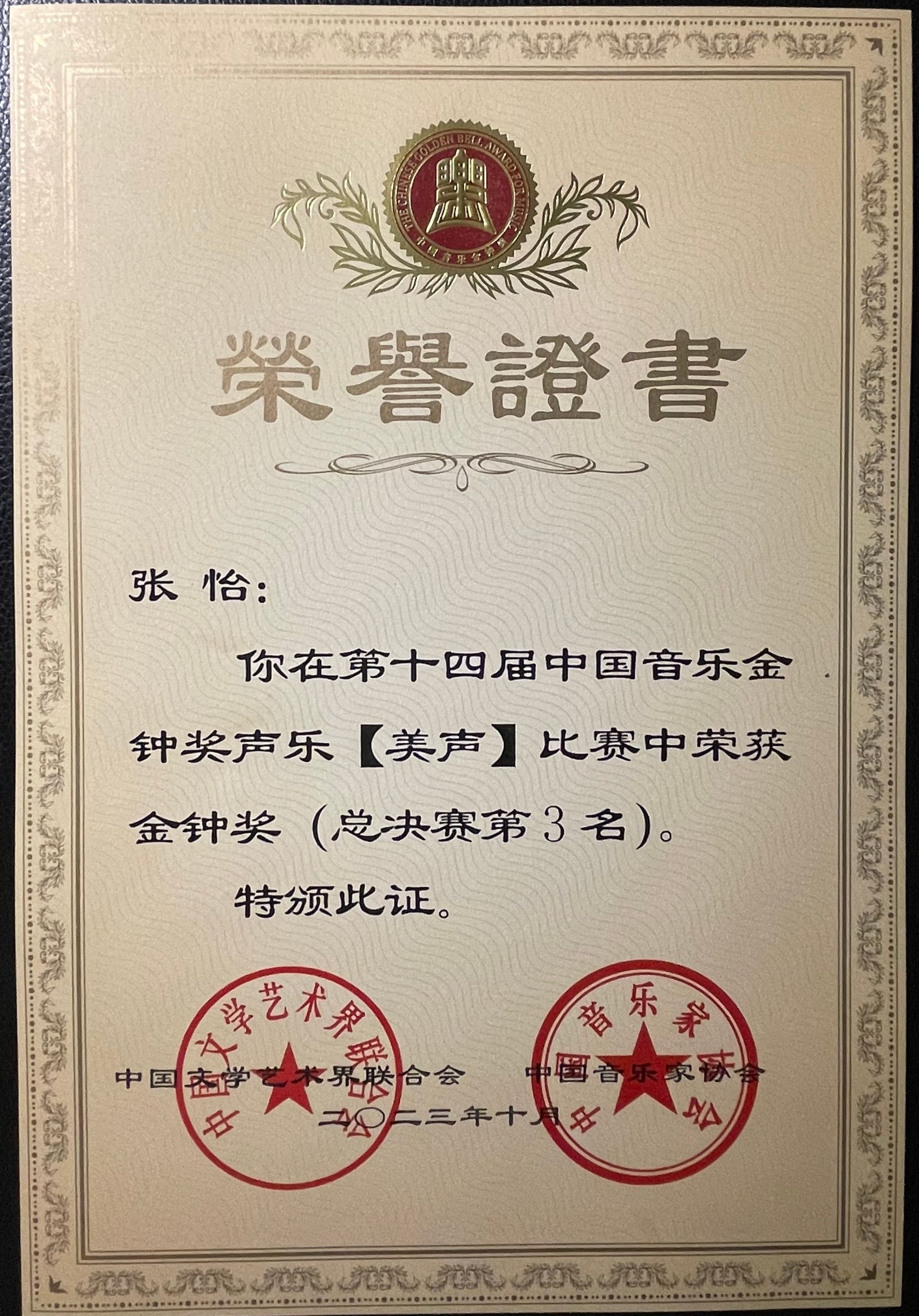2018年入选KY开元集团官网入口“BOB”拔尖创新人才培养计划并于广州北京成功举办“张怡个人独唱音乐会”. 同年入选成为国家艺术基金歌剧演唱人才培养项目成员.2020年入选成为“深圳声乐季·中国声乐人才培养计划”成员。