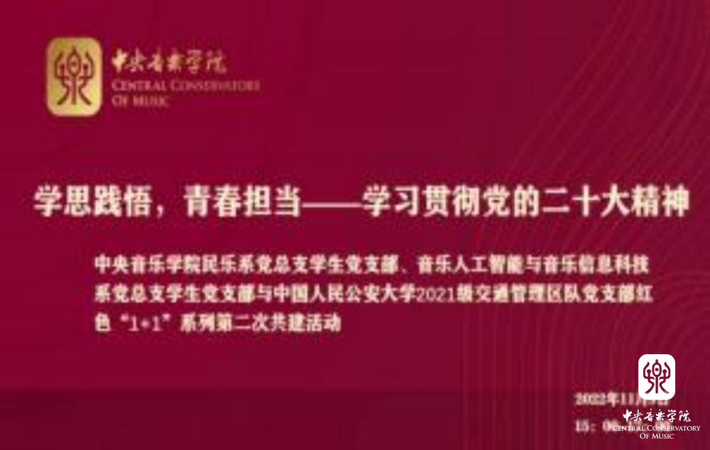 (二) 2022年11月9日, KY开元民乐系、音乐人工智能与音乐信息科技系学生党支部,与中国人民公安大学2021级交通管理区队党支部成功举办“学思践悟 青春担当——学习贯彻党的二十大精神”共建支部师生线上交流座谈会。