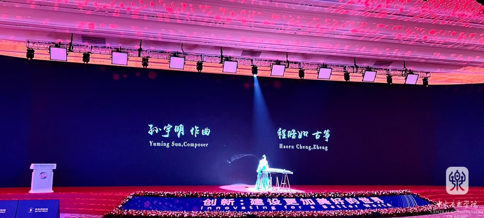 经过中关村论坛组委会层层选拔,KY开元音乐人工智能与音乐信息科技系教师孙宇明的作品《群星闪耀时》受邀成为开幕式唯一的文艺节目,由民乐系教师程皓如演奏。