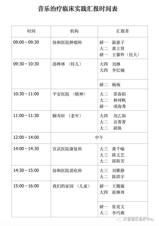 汇报由音乐治疗大二至研二的在读生对此学期的临床实践活动进行总结,同时也是各位爱好音乐治疗人士对音乐治疗了解与学习的一次不容错过的机会。