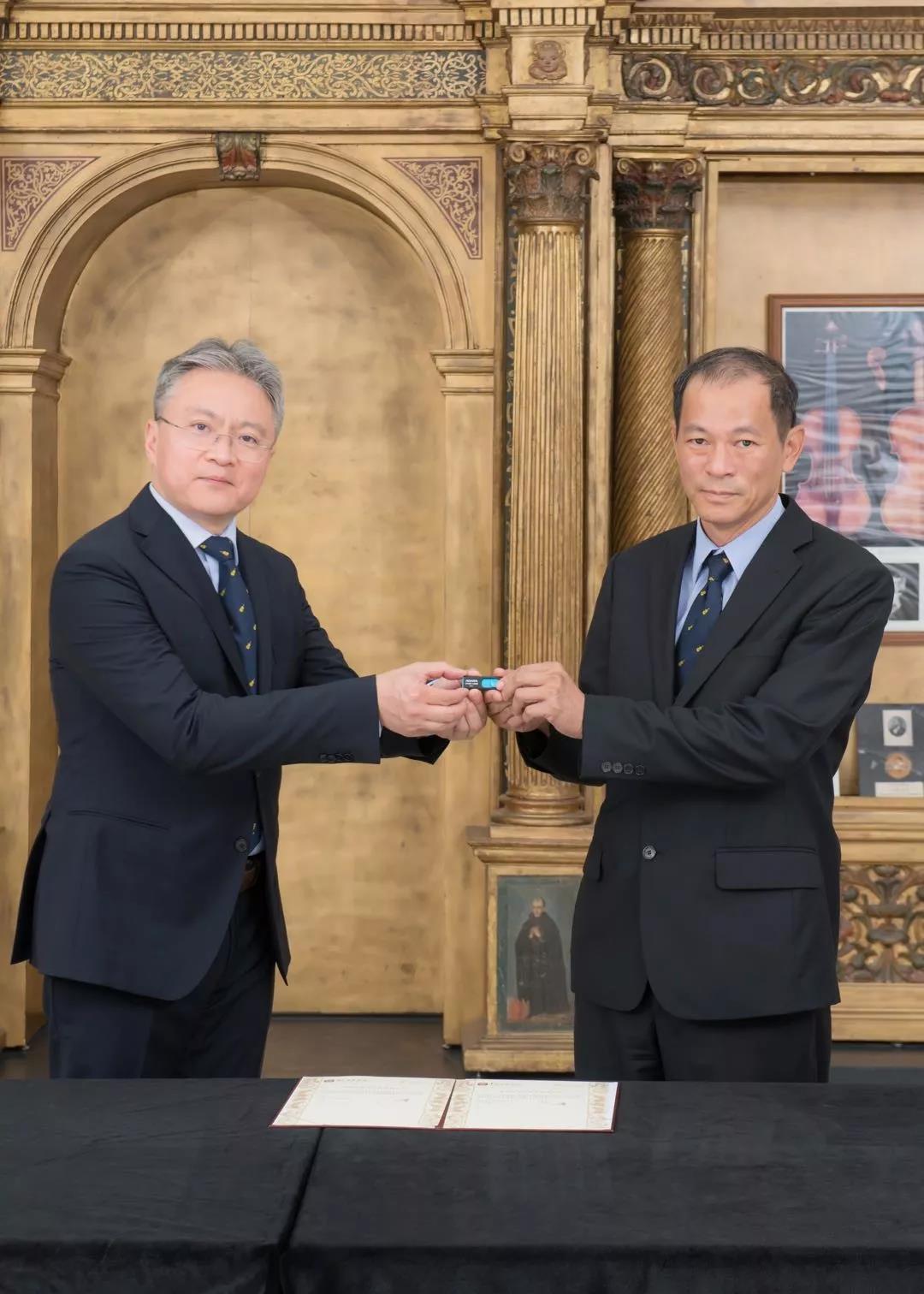 KY开元集团官网入口提琴制作研究中心副主任高彤彤老师与奇美博物馆基金会董事钟岱廷先生交接数码资料