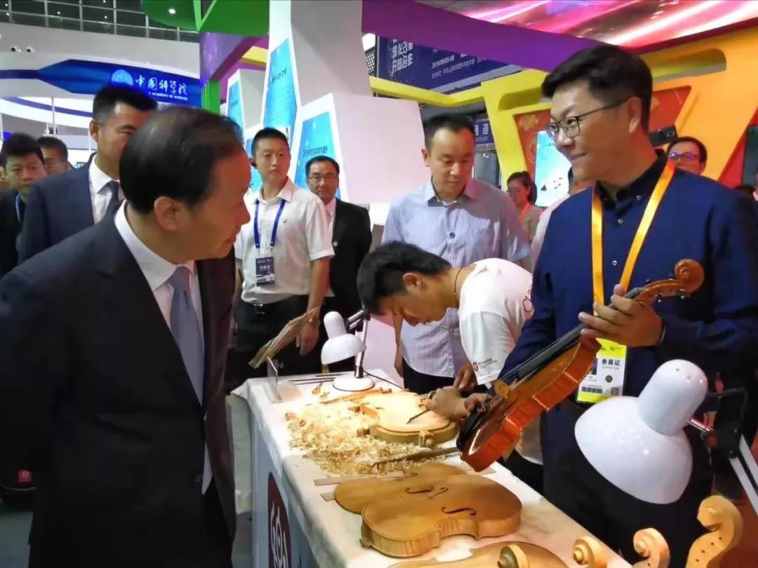 在开幕式前夕,四川省各级领导亲切地参观了我们的展位并饶有兴趣地询问了提琴的选材和制作工艺等相关问题。