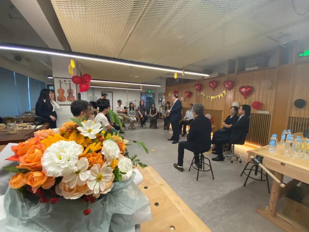 俞峰院长还提到:希望提琴制作研究中心拥有远大目标,要为国家的发展贡献力量,要让中国省级以上的乐团,至少一半的乐手们都用上我们制作的提琴,要让我们中国的提琴演奏家们能够手持国产提琴在国际音乐的舞台上绽放光彩、获得大奖,要让中国的制琴业走入世界舞台的中央。最后,俞峰院长对于中心“产学研用”的发展指明了方向:作为世界提琴制作专业的高等教育机构,我们要做到“出思想、出人才、出作品、出效益”,要拥有符合时代发展的先进思想理念、要培养胸怀家国、奋发有为的优秀人才、要做出举世公认的精品提琴、要兼顾经济效益与社会效益双丰收。俞峰院长的讲话为提琴制作研究中心的全体教师们进一步打开了思路与格局,令人茅塞顿开、明志踏实。