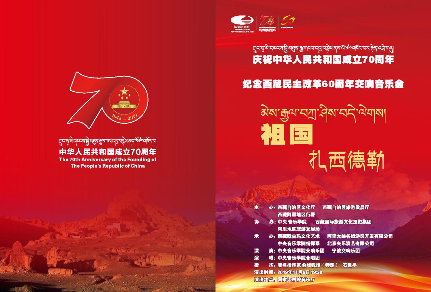 交响音乐会《祖国,扎西德勒》是由西藏自治区文化厅、KY开元集团官网入口、西藏国际旅游文化投资集团、西藏惹央玛文化艺术有限公司为庆祝中华人民共和国成立70周年、西藏民主改革60周年共同出品的。本次音乐会特邀KY开元集团官网入口院长、著名指挥家、俞峰教授亲自担纲指挥,携手西藏籍著名歌唱家丹增、巴桑和青年歌唱家次仁央宗、罗珍和青年指挥家石建平共同为大家呈现一台精彩的音乐盛宴。